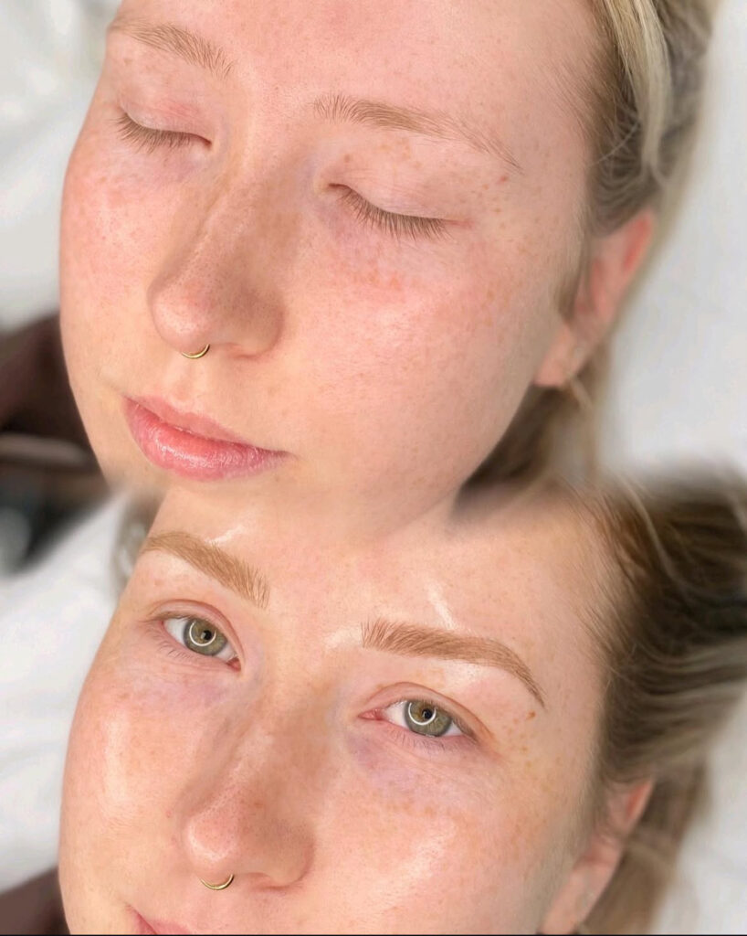 Brow Lamination: Straightens and sets the brow hairs in place to create a fuller, more defined appearance. This treatment helps to reshape unruly or sparse eyebows by smoothing and lifting the hairs, resulting in a groomed and uniform look that lasts for several weeks.